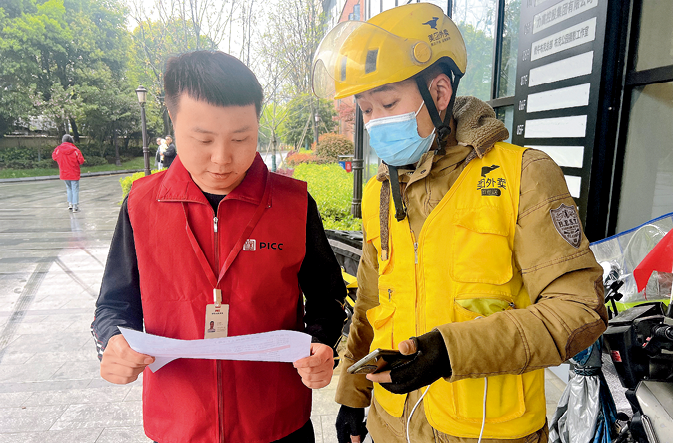 ▲4月3日,为深入贯彻落实二十大精神,聚焦新市民、新业态人群风险保障,人保财险杭州桐庐支公司连续数日开展“安业保”宣传活动。工作人员把握机会,向外卖小哥详细的介绍产品内容,获得外卖小哥的连连点赞。